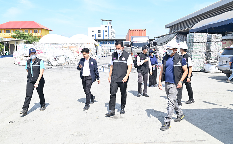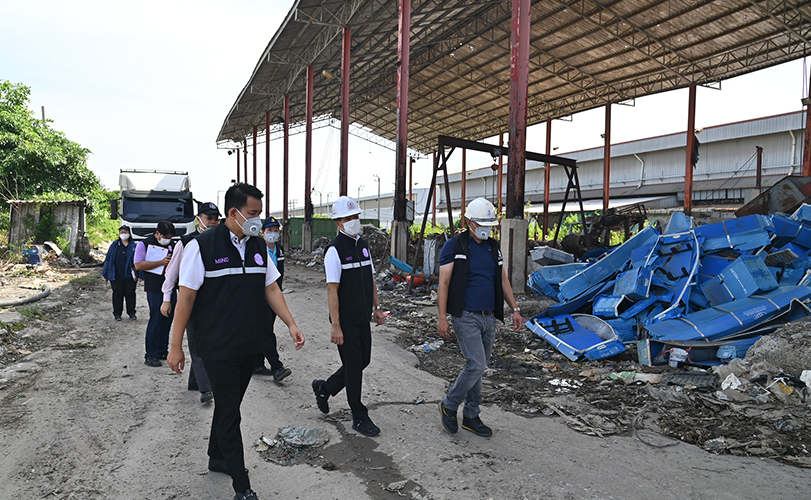 ต่อมาเวลา 10.00 น. เลขานุการรัฐมนตรีว่าการกระทรวงอุตสาหกรรม ได้นำชุดเต็มเหนี่ยวพร้อมเจ้าหน้าที่ฯ ลงพื้นที่ตรวจสอบ บริษัท ถุงทองโลหะ อินเตอร์ จำกัด ตั้งอยู่หมู่ที่ 8 ตำบลศีรษะจรเข้ใหญ่ อำเภอบางเสาธง จังหวัดสมุทรปราการ ซึ่งประกอบกิจการถอดแยกและบดย่อยชิ้นส่วนอุปกรณ์ไฟฟ้าและอิเล็กทรอนิกส์ บดย่อยเศษคัดแยกวัสดุสายไฟที่ไม่เป็นของเสียอันตราย และหลอมหล่อเศษและตะกรันโลหะ เก็บรวบรวมแบตเตอรี่โดยไม่แปรสภาพ จากการตรวจสอบ พบสิ่งที่ไม่ได้เป็นไปตามที่ได้รับอนุญาตตามทะเบียนโรงงาน ไม่ว่าจะเป็น กระบวนการผลิตซิลิคอนผงโดยไม่ได้รับอนุญาต ไม่มีการตรวจวัดคุณภาพปล่องระบาย พบกองวัตถุและผลิตภัณฑ์นอกอาคารโรงงาน และอยู่ในระหว่างการตรวจวัดดินและน้ำใต้ดิน