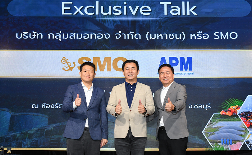 นายกิตติพงษ์ พวงมาลา ประธานเจ้าหน้าที่บริหาร บริษัท กลุ่มสมอทอง จำกัด (มหาชน) หรือ SMO พร้อมด้วยดร.สมภพ ศักดิ์พันธ์พนม ประธานกรรมการ นายสุริยา ธรรมธีระ รองกรรมการผู้จัดการ บริษัท แอสเซท โปร แมเนจเม้นท์ จำกัด (APM) ในฐานะที่ปรึกษาทางการเงิน ร่วมนำเสนอข้อมูลธุรกิจและทิศทางการเติบโตของบริษัท แก่นักลงทุนจังหวัดชลบุรี ในงานสัมมนา "Exclusive Talk" โดยบริษัทมีภาพรวมการดำเนินงาน 9 เดือน ปี 68 บริษัทมีรายได้รวม 7,180.58 ล้านบาท ปรับตัวเพิ่มสูงขึ้น 2,365.81 ล้านบาท หรือคิดเป็นเพิ่มขึ้น 49.14% เมื่อเทียบกับช่วงเดียวกันปีก่อนที่มีรายได้ 4,814.77 ล้านบาทและมีกำไรสุทธิอยู่ที่ 652.07 ล้านบาท ปรับตัวเพิ่มสูงขึ้น 346.50 ล้านบาท หรือคิดเป็นเพิ่มขึ้น 113.39% YoY เมื่อเทียบกับช่วงเดียวกันปี 67 ที่มีกำไรสุทธิ 305.57 ล้านบาท ทั้งนี้บริษัทประกาศจ่ายปันผลระหว่างกาลเป็นเงินสดในอัตราหุ้นละ 0.15 บาท โดยจ่ายจากกำไรสุทธิ ส่วนที่ได้รับการส่งเสริมการลงทุน หรือ BOI กำหนดวันที่ไม่ได้รับสิทธิปันผล (XD) ในวันที่ 25 พ.ย. 2568 และจ่ายปันผลในวันที่ 11 ธันวาคม 2568 ในขณะเดียวกันบริษัทยังได้นำเงินระดมทุน ลงทุน 960 ลบ. สร้างโรงงานใหม่ในจ.นครศรีธรรมราช เพื่อรองรับความต้องการน้ำมันปาล์มดิบในตลาดโลก อัพกำลังผลิตน้ำมันปาล์มดิบเป็น 390 ตัน ณ ห้องรัตนแกรนด์ บอลรูม ชั้น 12 โรงแรมรัตนชล จ.ชลบุรี