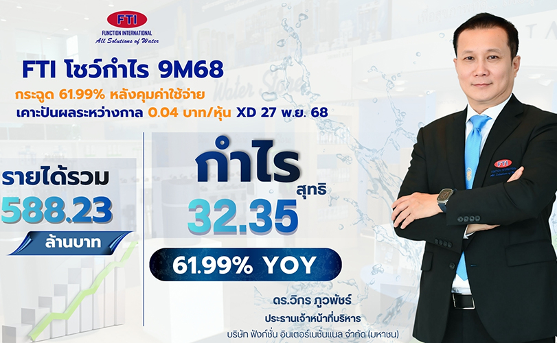“ฟังก์ชั่น อินเตอร์เนชั่นแนล” โชว์กำไร 9M68 ที่ 32.35 ลบ. โตกระฉูด 61.99% YOY กวาดรายได้ 588.23 ลบ. หลังคุมค่าใช้จ่าย เคาะจ่ายปันผลระหว่างกาล 0.04 บาทต่อหุ้น XD 27 พ.ย. 68