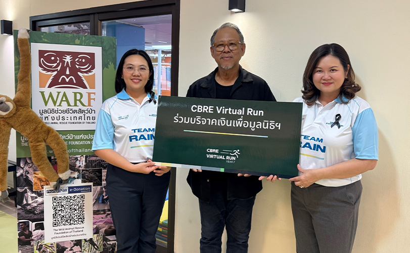 ซีบีอาร์อี ประเทศไทย บริจาคเงินจำนวนทั้งหมด 110,200 บาท จากการจัดกิจกรรม CBRE Virtual Run ให้แก่มูลนิธิเด็กโสสะแห่งประเทศไทย มูลนิธิสถาบันมะเร็งแห่งชาติ และมูลนิธิช่วยชีวิตสัตว์ป่าแห่งประเทศไทย โดยมี นางสาวรุ่งรัตน์ วีระภาคย์การุณ กรรมการผู้จัดการ นางสุมนศรี ประเสริฐพันธุ์ ผู้อำนวยการแผนกทรัพยากรบุคคล และ นางสาวจริญญา ยังประภากร หัวหน้าแผนกการตลาดและสื่อสารองค์กร เป็นตัวแทนในการมอบเงินบริจาค ทั้งนี้ CBRE Virtual Run เป็นกิจกรรมภายในองค์กรที่มีจุดประสงค์เพื่อส่งเสริมสุขภาพที่ดีของพนักงาน ควบคู่ไปกับการช่วยเหลือสังคม ซึ่งในปีนี้เป็นการจัดต่อเนื่องเป็นปีที่ 7