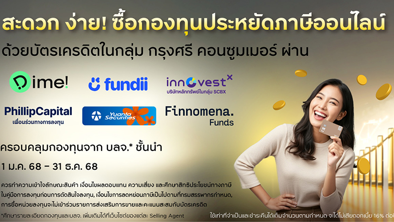 DAP และ FinNet รองรับซื้อกองทุนลดหย่อนภาษีด้วยบัตรเครดิตในกลุ่ม กรุงศรี คอนซูมเมอร์