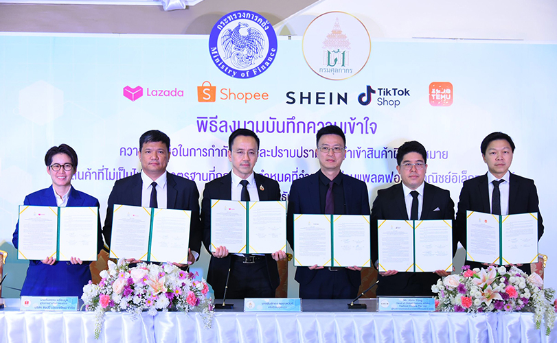 กรมศุลกากรจัดพิธีลงนามบันทึกความเข้าใจ ความร่วมมือในการกำกับดูแลและปราบปรามการนำเข้าสินค้าผิดกฎหมายและสินค้าที่ไม่เป็นไปตามมาตรฐานที่กฎหมายกำหนด โดยมี นายพันธ์ทอง ลอยกุลนันท์ อธิบดีกรมศุลกากร เป็นประธานในพิธีฯ และนางสาวสุนทรียา ทวิชาประสิทธิ์ รองอธิบดีกรมศุลกากร เป็นผู้รายงานความเป็นมา วัตถุประสงค์ และเป้าหมายความร่วมมือ ร่วมด้วย พันโทหญิง ดร.ธมกร ศุภธนรังสี รองประธานฝ่ายรัฐสัมพันธ์ บริษัท ลาซาด้า จำกัด นายกันตภณ พร้อมมูล ผู้จัดการฝ่าย กิจการองค์กร บริษัท ช้อปปี้ (ประเทศไทย) จำกัด Mr. Alvin Yang Head of Global Customs Affairs Fashion Choice Pte. Ltd. (SHEIN) นายพาวิชช์ ศุภพิพัฒน์ ผู้จัดการฝ่ายนโยบายสาธารณะและรัฐกิจสัมพันธ์