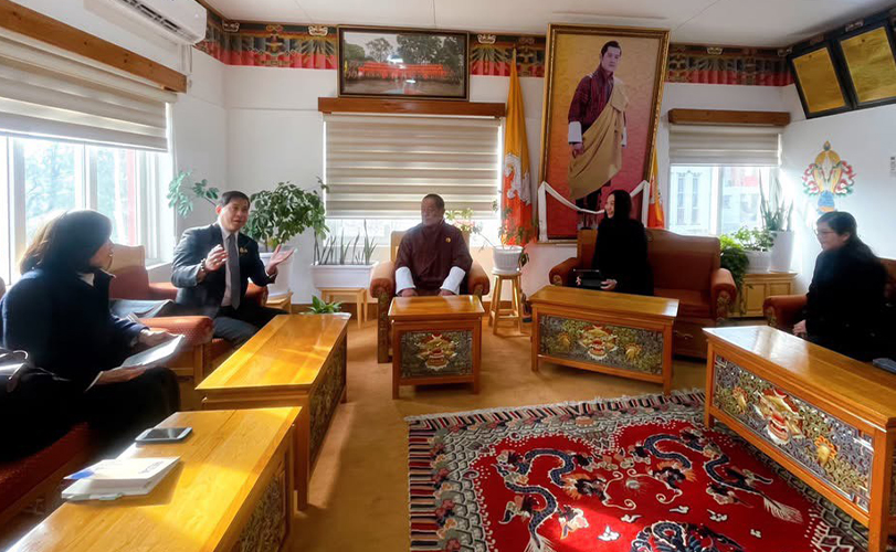 พันเอก ศรัณยู วิริยเวชกุล รองผู้อำนวยการสำนักงานความร่วมมือพัฒนาเศรษฐกิจกับประเทศเพื่อนบ้าน (องค์การมหาชน) (สพพ.) พร้อมคณะผู้แทน เข้าเยี่ยมคารวะ H.E. Mr. Gem Tshering รัฐมนตรีว่าการกระทรวงพลังงานและทรัพยากรธรรมชาติ โดยหารือความเป็นไปได้ในการสร้างความร่วมมือทางการเงินและวิชาการระหว่าง สพพ. กับภูฏาน โดยเฉพาะอย่างยิ่งความร่วมมือเชิงกลยุทธ์และโอกาสของ สพพ. ในการร่วมมือพัฒนาเทคโนโลยีเพื่อสิ่งแวดล้อมและพลังงานสีเขียว (Environment and Green Technology) โดยมีเป้าหมายเพื่อลดผลกระทบเชิงลบต่อธรรมชาติและปกป้องฟื้นฟูสิ่งแวดล้อมอย่างยั่งยืน ในโอกาสนี้ สพพ. ได้ให้ข้อมูลหลักการและเงื่อนไขการให้ความช่วยเหลือของ สพพ. เพื่อประโยชน์ในการสร้างความร่วมมือสำหรับราชอาณาจักรภูฏานต่อไป ณ กระทรวงพลังงานและทรัพยากรธรรมชาติ กรุงทิมพู ราชอาณาจักรภูฏาน