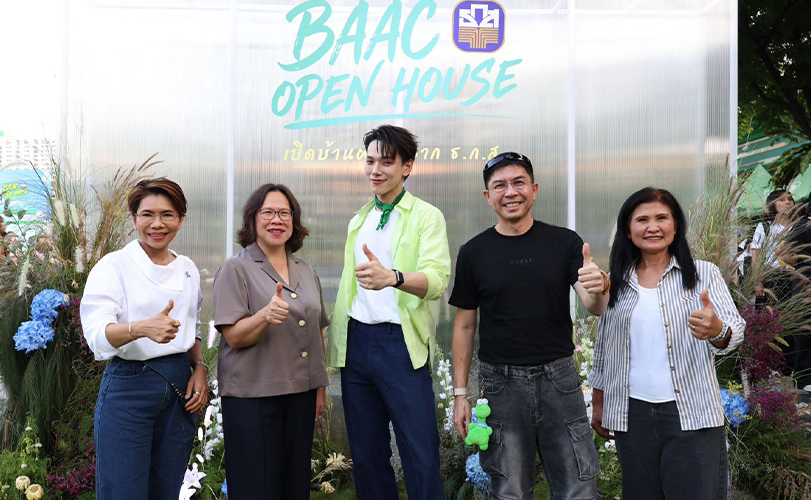 นายฉัตรชัย ศิริไล ผู้จัดการธนาคารเพื่อการเกษตรและสหกรณ์การเกษตร (ธ.ก.ส.) ต้อนรับประชาชนที่มาเข้าร่วมกิจกรรม BAAC Open House เปิดบ้านฝากสลาก ธ.ก.ส. เพื่อเปิดประสบการณ์ใหม่ในการเสริมสร้างพฤติกรรมการออมเงินให้กับคนเมือง พร้อมนำเสนอผลิตภัณฑ์และบริการทางการเงินที่ตอบโจทย์ไลฟ์สไตล์ในยุคปัจจุบัน โดยภายในงานมีบูธให้บริการทางการเงินและสิทธิพิเศษสำหรับผู้เปิดบัญชีและฝากสลากออมทรัพย์ ธ.ก.ส. อาทิ สลากออมทรัพย์ ธ.ก.ส. ชุดกระพ้อมทองและชุดกระพ้อมเงิน ที่มาพร้อมโปรโมชันสุดพิเศษเฉพาะในงาน ได้แก่ เมื่อฝากสลากออมทรัพย์ชุดใดก็ได้ จำนวน 20,000 บาท รับหมอนผ้าห่ม Agri Animal จำนวน 1 ชิ้น คละแบบ เมื่อฝากสลากฯ 50,000 บาท รับหมอนผ้าห่ม Agri Animal จำนวน 2 ชิ้น คละแบบ และเมื่อฝากสลากฯ 1,000,000 บาท รับหมอนผ้าห่ม Agri Animal จำนวน 4 ชิ้นครบเซ็ต ไม่ซ้ำแบบ และเมื่อทำธุรกรรมที่เคาน์เตอร์สาขาภายในงาน (ยกเว้นการปรับสมุดและถอนเงิน) รับคูปองลุ้นของที่ระลึกจาก ธ.ก.ส. สุด Limited Edition กับกิจกรรม Happy Hour Happy Surprise ให้ผู้เข้าร่วมงานได้ร่วมสนุกทุกชั่วโมง พร้อมลุ้นรับของที่ระลึกสุดพิเศษจาก ธ.ก.ส. และยังมีกิจกรรมพิเศษ DIY สมุดโน้ตเล่มเดียวในโลก เมื่อฝากสลากออมทรัพย์ ธ.ก.ส. ชุดขวัญถุง ไม่จำกัดขั้นต่ำ ณ เคาน์เตอร์สาขาภายในงาน รับสมุดปฏิทินนักออม ธ.ก.ส. พร้อมกิจกรรม DIY ทั้งนี้ ภายในงานยังมีการออกบูธร้านอาหารและเครื่องดื่ม รวมถึงการจำหน่ายผลิตภัณฑ์แกลมเกษตรจากลูกค้า ธ.ก.ส. ที่มาร่วมสร้างสีสันและให้บริการ แก่ผู้เข้าร่วมงาน อาทิ โกโก้และเครปในตำนาน ผลิตภัณฑ์แกลมเกษตร ทั้งข้าวโพดมัมมี่ (freeze dried) ที่นำข้าวโพดหวานมายกระดับเพิ่มมูลค่าผลผลิตด้วยกระบวนการ freeze dried สามารถรักษาคุณค่าทางสารอาหาร ทั้งรสชาติ สี กลิ่น เก็บรักษาไว้ได้นานถึง 25 ปี โดยไม่ต้องใส่สารกันบูด รวมทั้งมีการพัฒนาบรรจุภัณฑ์จนได้มาตรฐาน A-Product ติดต่อได้ที่ ศูนย์เรียนรู้กสิกรรมไร้สารพิษละโว้ธานี จังหวัดลพบุรี โทร. 080 666 3311 และ โจ๊กข้าวหอมภูเขาไฟ โจ๊กกึ่งสำเร็จรูปที่ผลิตจากข้าวหอมมะลิแท้ มีกลิ่นหอมเฉพาะตัว เนื้อสัมผัสนุ่มละมุน ที่ผลิตจากภูมิปัญญาและเต็มไปด้วยคุณภาพจากแหล่งปลูกข้าวบุรีรัมย์ อิ่มง่ายใน 2 นาที เพียงใส่น้ำร้อน ตอบโจทย์ผู้บริโภค ยุคใหม่ที่ใช้ชีวิตเร่งรีบ แต่ยังได้รับประทานอาหารที่เต็มไปด้วยคุณค่าทางสารอาหาร ติดต่อได้ที่ สหกรณ์การเกษตรเพื่อการตลาดลูกค้า ธกส บุรีรัมย์ จำกัด โทร. 044 690 255