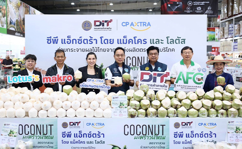 “แม็คโคร–โลตัส” ภายใต้ บริษัท ซีพี แอ็กซ์ตร้า จำกัด (มหาชน) เปิดพื้นที่ให้ชาวสวนมะพร้าวนำผลผลิตสดจากสวนมาจำหน่ายส่งตรงถึงผู้บริโภค โดยไม่เสียค่าใช้จ่าย เพื่อเพิ่มช่องทางการตลาด ลดขั้นตอนคนกลาง และบรรเทาผลกระทบจากราคามะพร้าวที่ผันผวน โดยมี นายวิทยากร มณีเนตร อธิบดีกรมการค้าภายใน กระทรวงพาณิชย์, ศูนย์ประสานงานและประชาสัมพันธ์สินค้าเกษตรและอาหาร (AFC) หอการค้าไทย เข้าเยี่ยมชมการจำหน่าย พร้อมด้วย นางศิริพร เดชสิงห์ ประธานเจ้าหน้าที่บริหาร สายงานความยั่งยืนและสื่อสารองค์กร และ นายสมนึก ยอดดำเนิน ผู้อำนวยการฝ่ายบริหารสินค้าอาหารสด ซีพี แอ็กซ์ตร้า ให้การต้อนรับ ร่วมกับเกษตรกร ณ แม็คโคร สาขานครอินทร์ ตอกย้ำบทบาทของแม็คโคร–โลตัส เคียงข้างเกษตรกรไทยสร้างรายได้ที่ยั่งยืน
