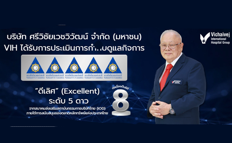 บริษัท ศรีวิชัยเวชวิวัฒน์ จำกัด (มหาชน) หรือ VIH หนึ่งในผู้ให้บริการด้านสถานพยาบาลภายใต้กลุ่มโรงพยาบาลวิชัยเวช อินเตอร์เนชั่นแนล ประสบความสำเร็จคว้าคะแนน CGR 2568 ในระดับ 5 ดาว หรือ “ดีเลิศ” (Excellent CG Scoring) จากการสำรวจด้านการกำกับดูแลกิจการของบริษัทจดทะเบียนไทย ประจำปี 2568 หรือ Corporate Governance Report of Thai Listed Companies (CGR) จากสมาคมส่งเสริมสถาบันกรรมการบริษัทไทย (Thai IOD) ภายใต้การสนับสนุนจากตลาดหลักทรัพย์แห่งประเทศไทย (ตลท.)