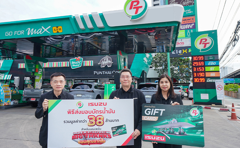 พีทีจี ร่วมกับ อีซูซุ เปิดแคมเปญ “MAXFORCE BIG THANKS ขอบคุณจากใจ” มอบบัตรเติมน้ำมันรวมมูลค่ากว่า 38.7 ล้านบาท ให้กับผู้ซื้อรถอีซูซุ