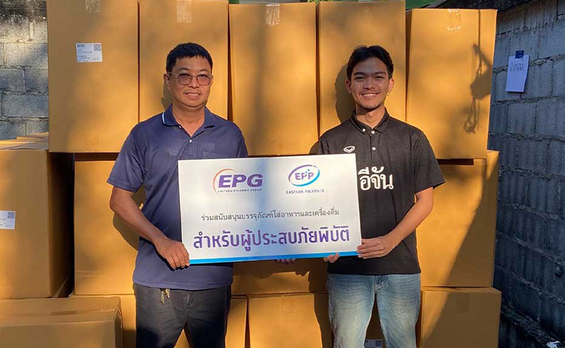 บริษัท อีสเทิร์นโพลีเมอร์ กรุ๊ป จำกัด (มหาชน) หรือ EPG ผู้ผลิตและจำหน่ายผลิตภัณฑ์โพลีเมอร์และพลาสติกแปรรูปชั้นนำของโลก พร้อมด้วยบริษัทย่อย ได้แก่ บริษัท แอร์โรเฟลกซ์ (Aeroflex) จำกัด บริษัท แอร์โรคลาส จำกัด (Aeroklas) และ บริษัท อีสเทิร์น โพลีแพค จำกัด (EPP) ร่วมกันให้การสนับสนุนทรัพยากรและความช่วยเหลือรวมมูลค่าประมาณ 1,000,000 บาท เพื่อบรรเทาความเดือดร้อนของประชาชนที่ได้รับผลกระทบจากอุทกภัยในพื้นที่อำเภอหาดใหญ่ จังหวัดสงขลา และจังหวัดใกล้เคียง โดยการประสานงานและส่งมอบสิ่งของได้ดำเนินการผ่านเพจ “อีจัน” เพื่อให้ความช่วยเหลือเข้าถึงพื้นที่ได้อย่างรวดเร็วและมีประสิทธิภาพ