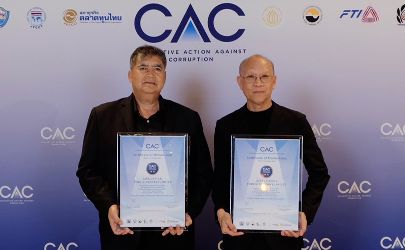 นายสุทธิพร ตัณฑิกุล ที่ปรึกษาบริษัท บริษัท ไอร่า แคปปิตอล จำกัด (มหาชน) พร้อมด้วย นายรัชพล สำราญผล ผู้ช่วยกรรมการผู้จัดการ ฝ่ายเทคโนโลยีสารสนเทศ และฝ่ายปฏิบัติการ บริษัท ไอร่า ลีสซิ่ง จำกัด (มหาชน) เป็นผู้แทนรับมอบประกาศนียบัตร รับรองการเป็นสมาชิกโครงการแนวร่วมต่อต้านคอร์รัปชันของภาคเอกชนไทย (Collective Action Against Corruption: CAC) โดย AIRA Group ได้รับการรับรองเป็นสมาชิกแนวร่วมต่อต้านคอร์รัปชัน ของภาคเอกชนไทย ต่อเนื่องเป็นครั้งที่ 3 ขณะที่บริษัท ไอร่า ลีสซิ่ง จำกัด (มหาชน) ได้รับการรับรอง ต่อเนื่องเป็นครั้งที่ 2 สำหรับการเข้ารับประกาศนียบัตรในครั้งนี้ ตอกย้ำถึงความมุ่งมั่นในการพัฒนาธุรกิจอย่างยั่งยืนของบริษัทฯ ที่ให้ความสำคัญและยึดมั่นต่อการดำเนินธุรกิจภายใต้หลักธรรมาภิบาล บนพื้นฐานการกำกับดูแลที่ดี และจรรยาบรรณในการดำเนินธุรกิจ รวมทั้งมีความรับผิดชอบต่อสังคม สิ่งแวดล้อม และผู้มีส่วนได้เสียทุกฝ่าย เพื่อให้มั่นใจว่ากลุ่มบริษัท มีนโยบายการกำหนดความรับผิดชอบแนวปฏิบัติและข้อกำหนดในการดำเนินการที่เหมาะสม และร่วมป้องกันและต่อต้านการทุจริตคอร์รัปชัน ทุกรูปแบบ เพื่อสร้างความโปร่งใส และความมั่นคงขององค์กร
