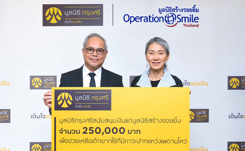 มูลนิธิกรุงศรี โดย นายไพโรจน์ ชื่นครุฑ ประธานคณะเจ้าหน้าที่ด้านกลยุทธ์และวางแผนธุรกิจองค์กร ธนาคารกรุงศรีอยุธยา จํากัด (มหาชน) ในฐานะผู้แทนมูลนิธิกรุงศรี มอบเงินสนับสนุนแก่มูลนิธิสร้างรอยยิ้ม จำนวน 250,000 บาท เพื่อสนับสนุนโครงการผ่าตัดแบบต่อเนื่อง สำหรับเด็กด้อยโอกาสที่มีภาวะปากแหว่งเพดานโหว่ ณ โรงพยาบาลชลบุรี จังหวัดชลบุรี โดยมี ทันตแพทย์หญิงยุพเรศ นิมกาญจน์ ประธานกรรมการมูลนิธิสร้างรอยยิ้ม เป็นผู้รับมอบ โดยตลอดระยะเวลา 5 ปีที่ผ่านมา มูลนิธิกรุงศรีได้ให้การช่วยเหลือแก่เยาวชนที่มีภาวะปากแหว่งเพดานโหว่ให้ได้รับการรักษาที่เหมาะสมและทันท่วงที รวมจำนวนทั้งสิ้น 63 คน