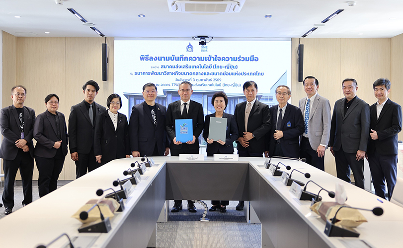 ธนาคารพัฒนาวิสาหกิจขนาดกลางและขนาดย่อมแห่งประเทศไทย (ธพว.) หรือ SME D Bank โดย นายพิชิต มิทราวงศ์ กรรมการผู้จัดการ และ สมาคมส่งเสริมเทคโนโลยี (ไทย-ญี่ปุ่น) หรือ ส.ส.ท. โดย รองศาสตราจารย์ ปราณี จงสุจริตธรรม นายก ส.ส.ท. ร่วมลงนามบันทึกข้อตกลงความร่วมมือ “การพัฒนาและสนับสนุนผู้ประกอบการเพื่อยกระดับศักยภาพ SMEs” เพื่อส่งเสริมผู้ประกอบการเอสเอ็มอี นำเทคโนโลยีและนวัตกรรม มาประยุกต์ใช้ต่อยอดธุรกิจ สร้างการเติบโตอย่างยั่งยืน พร้อมก้าวสู่อุตสาหกรรมแห่งอนาคต ณ ห้องประชุม Board Room ชั้น 3 อาคารสมาคมส่งเสริมเทคโนโลยี (ไทย-ญี่ปุ่น)