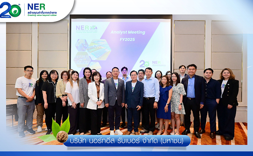 นายชูวิทย์ จึงธนสมบูรณ์ ประธานเจ้าหน้าที่บริหาร พร้อมด้วยนายศักดิ์ชัย จงสถาพงษ์พันธ์ ประธานเจ้าหน้าที่บริหารสายงานบัญชีและการเงิน, นางสาวเกศนรี จองโชติศิริกุล รองประธานเจ้าหน้าที่บริหารสายงานการตลาด และนางสาว ปาร์ย อรรถพิสาล รองประธานเจ้าหน้าที่บริหาร สายงานพัฒนาความยั่งยืน บริษัท นอร์ทอีส รับเบอร์ จำกัด (มหาชน) หรือ NER ถ่ายภาพร่วมกับนักวิเคราะห์หลักทรัพย์ ภายหลังการจัดกิจกรรม Analyst Meeting เพื่อนำเสนอข้อมูลผลประกอบการประจำปี 2568 โดยโชว์รายได้ 30,510.20 ล้านบาท เพิ่มขึ้น 10.96% กำไรสุทธิ 1,884.52 ล้านบาท เพิ่มขึ้น 14.04% จากปีก่อน และปี 2569 บริษัทฯ ตั้งเป้าการเติบโต ต่อเนื่อง ด้วยกำลังการผลิตที่ 500,000 ตันต่อปี มียอดขายประมาณ 32,000 ล้านบาท โดยกลยุทธ์หลักจะมุ่งเน้นการขยายตลาด พร้อมสร้างความมั่นคงของรายได้ผ่านสัญญาระยะยาวกับผู้ผลิตยางรถยนต์ รวมถึงเพิ่มลูกค้าใหม่อีก 2 รายภายในปีนี้ กิจกรรมดังกล่าวจัดขึ้น ณ โรงแรม แกรนด์ เซนเตอร์ พ้อยท์ ลุมพินี กรุงเทพฯ