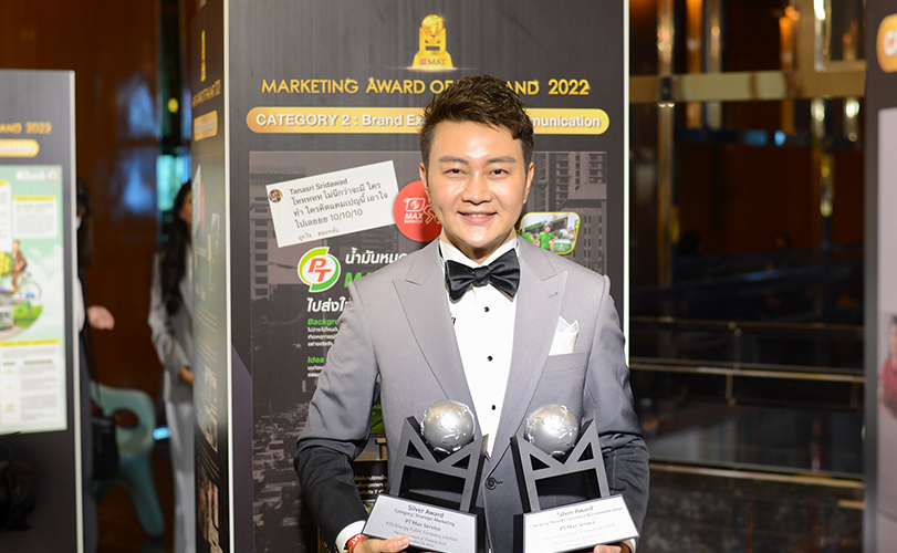 นายพร้อมศักดิ์ จรัญญากรณ์ กรรมการผู้จัดการ บริษัทแมกซ์ โซลูชัน เซอร์วิส จำกัด บริษัทในเครือพีทีจี ขึ้นรับรางวัลบนเวทีการประกวดแคมเปญการตลาดประจำปี ภายใต้ชื่องาน “Marketing Award of Thailand 2022” จัดขึ้นโดยสมาคมการตลาดแห่งประเทศไทย ซึ่งแคมเปญ PT Max Service (พีที แมกซ์ เซอร์วิส) สามารถคว้าชัยชนะในระดับ Silver มาถึง 2 รางวัลด้วยกัน ในประเภท 1) Strategic Marketing แคมเปญการตลาดที่มีความเป็นเลิศด้านกลยุทธ์ และ 2) Brand Experience & Communication แคมเปญการตลาดที่มีความเป็นเลิศด้านการสร้างคุณค่าของแบรนด์ จากผลงานเข้าร่วมประกวดทั้งสิ้น 73 ผลงาน จาก 39 องค์กรทั่วประเทศ นับเป็นก้าวย่างความสำเร็จและความภูมิใจที่ผลงานสื่อสารการตลาดอย่างสร้างสรรค์สามารถเกิดประโยชน์แก่ผู้บริโภคโดยตรงและได้รับการยอมรับจากองค์กรการตลาดระดับประเทศเช่นนี้