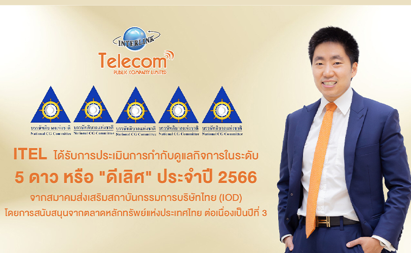 บริษัท อินเตอร์ลิ้งค์ เทเลคอม จำกัด (มหาชน) หรือ ITEL ผู้ให้บริการโครงข่ายใยแก้วนำแสง ให้บริการติดตั้งโครงข่าย และให้บริการพื้นที่ศูนย์สำรองข้อมูลหรือดาต้า เซ็นเตอร์ (Data Center) ได้รับคะแนนประเมินการกำกับดูแลกิจการในระดับ 5 ดาว หรือ "ดีเลิศ" (Excellent CG Scoring) จากสมาคมส่งเสริมสถาบันกรรมการบริษัทไทย (IOD) โดยการสนับสนุนจากตลาดหลักทรัพย์แห่งประเทศไทย ต่อเนื่องเป็นปีที่ 3 จากการสำรวจด้านการกำกับดูแลกิจการของบริษัทจดทะเบียนไทย ประจำปี 2566 (Corporate Governance Report of Thai Listed Companies 2023 :CGR) ซึ่งมีบริษัทจดทะเบียนเข้าร่วมการประเมินรวมทั้งสิ้น 782 บริษัท
