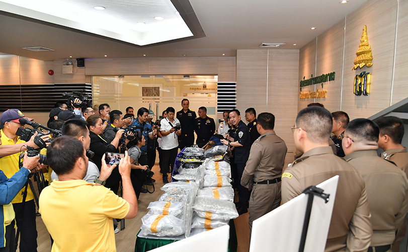 นายพันธ์ทอง ลอยกุลนันท์ ที่ปรึกษา ด้านการพัฒนาและบริหารการจัดเก็บภาษี ในฐานะโฆษกกรมศุลกากร นายจักกฤช อุเทนสุต รองอธิบดีกรมศุลกากรพร้อมผู้แทนจากสำนักงานคณะกรรมการป้องกันและปราบปรามยาเสพติด กองบัญชาการตำรวจปราบปรามยาเสพติด สำนักงานตรวจคนเข้าเมือง กองบัญชาการตำรวจท่องเที่ยว สถานีตำรวจภูธรท่าอากาศยานสุวรรณภูมิ บริษัท
