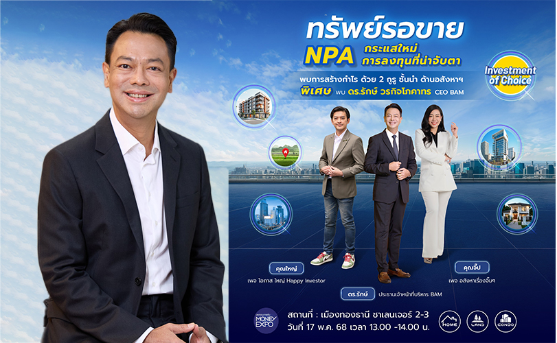 ในวันเสาร์ที่ 17 พฤษภาคม 68 เวลา 13.00 – 13.20 น. BAM ยังได้จัดสัมมนาให้ความรู้การลงทุนในอสังหาริมทรัพย์มือสอง ในหัวข้อ “โอกาสทองการลงทุนในอสังหาฯ มือ 2” โดย ดร.รักษ์ วรกิจโภคาทร ประธานเจ้าหน้าที่บริหาร BAM จะมาตอบโจทย์การลงทุนใน NPA หลังจากนั้น เวลา 13.20 – 14.00 น. พบการสร้างกำไร โดย 2 กูรูชั้นนำ ด้านอสังหาฯ ในหัวข้อ ทรัพย์รอขาย (NPA) กระแสใหม่ การลงทุนที่น่าจับตา โดย คุณโอภาส ถิรปัญญาเลิศ ประธานเจ้าหน้าที่บริหารฝ่ายปฏิบัติการ บริษัท พร็อพทูมอร์โรว์ จำกัด (เจ้าของเพจ โอภาส ใหญ่ Happy Investor) และคุณศิรประภา รักษ์สุจริต กรรมการผู้จัดการ บริษัท เวลทิเนส เอสเตท จำกัด (เจ้าของเพจอสังหาเรื่องจิ๊บ ๆ)