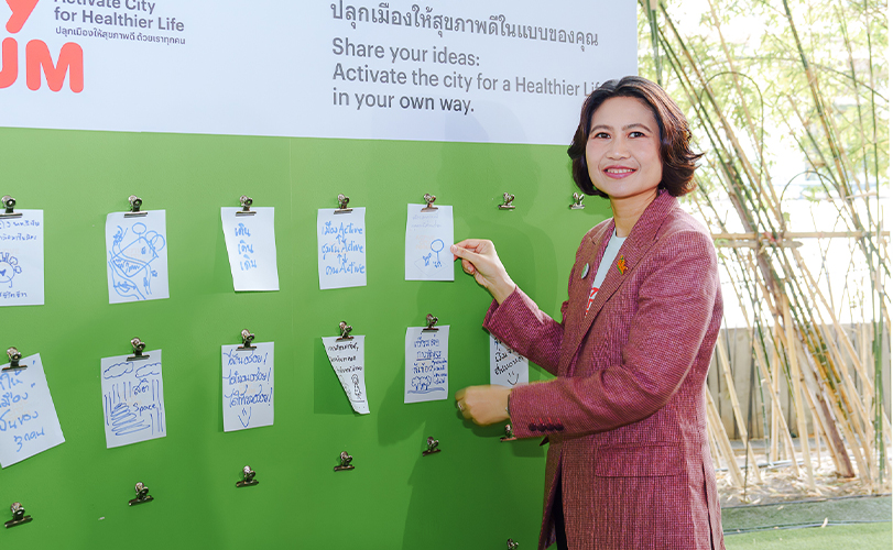 สุขภาวะวิถีใหม่เชื่อมต่อไปยังพื้นที่สีเขียวบริเวณใกล้เคียงแห่งอื่นๆ เพื่อป้องกันและแก้ไขปัญหาคนในพื้นที่ขาดการมีกิจกรรมทางกายที่เหมาะสมและเพียงพอ เพื่อนำไปสู่การลดความเสี่ยงต่อการเกิดโรคไม่ติดต่อ ( NCDs) โดยชุมชนสามารถเข้าถึงและใช้ประโยชน์ได้ง่ายด้วยแนวคิด “สุขภาพหนึ่งเดียว และเมืองกระฉับกระเฉง” เพื่อไปสู่ชุมชนสุขภาวะ 5 ด้าน ได้แก่ สภาพแวดล้อมที่ดี อาหารดี ชีวิตกระฉับกระเฉงด้วยการมีกิจกรรมทางกาย การเข้าถึงบริการสุขภาพ และเป็นชุมชนที่เข้มแข็งภายใต้พื้นที่ทางกายภาพ เช่น สวนสาธารณะและนันทนาการ