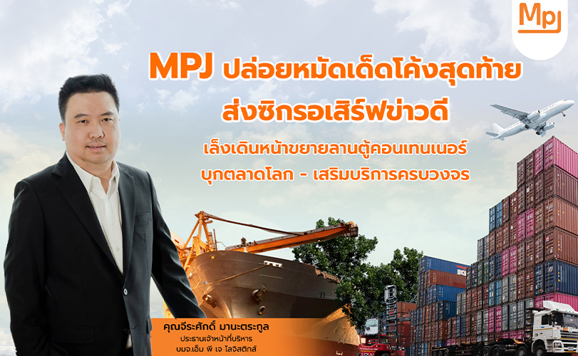 บมจ.เอ็ม พี เจ โลจิสติกส์ (MPJ) จ่อรอเสิร์ฟข่าวดีปิดท้ายปี โค้งสุดท้ายเดินเกมรุกขยายลานตู้คอนเทนเนอร์ในทำเลยุทธศาสตร์ พร้อมบุกตลาดตะวันออกกลาง–เอเชีย เสริมบริการ Freight Forwarder และคลังสินค้า รองรับดีมานด์พุ่ง