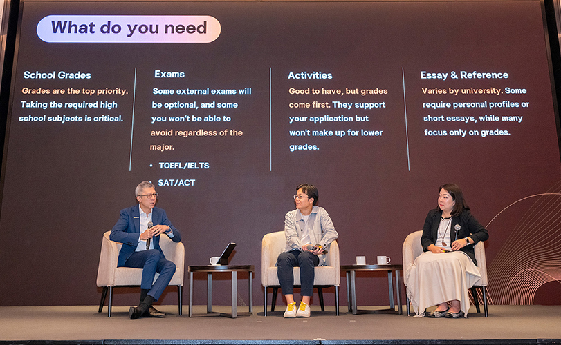 นางสาวกิตติประภา จิวะสันติการ กรรมการผู้จัดการและนักกลยุทธ์วางแผนศึกษาต่อต่างประเทศ สถาบัน EduSmith เน้นย้ำว่า “ไม่มีสูตรไหนที่ผิดหรือถูก” สำหรับการศึกษาต่อต่างประเทศ จะไปเรียนต่อต่างประเทศตั้งแต่ระดับมัธยมศึกษาเลยหรือจะไประดับมหาวิทยาลัยก็ได้ สิ่งสำคัญที่สุดคือการทำความเข้าใจภาพรวมของระบบการศึกษาและตัวตนของเด็กแต่ละคนเพื่อหาสิ่งที่เหมาะสม หากพิจารณาระบบการศึกษาของแต่ละประเทศก็จะมีลักษณะเด่นต่างกัน เช่น ระบบการศึกษาของประเทศสหรัฐอเมริกาจะมีอิสระทางการศึกษา เลือกหัวข้อการเรียนได้กว้างตามความสนใจ เน้นการค้นหาตัวเอง (Explore) และการมีเรื่องราวที่ไม่เหมือนใคร (Unique Story) ซึ่งเหมาะกับนักเรียนที่สนใจเรียนรู้แบบรอบด้าน (Well-rounded Student) ขณะที่ระบบของสหราชอาณาจักรจะเน้นความเป็นผู้เชี่ยวชาญในด้านใดด้านหนึ่งและเจาะลึก (In-depth Study) ลงไปในสาขาวิชาที่สนใจตั้งแต่ต้น เหมาะกับเด็กที่แน่วแน่ว่าตนเองต้องการเรียนอะไร ทั้งนี้ แนวคิดสำคัญของการเลือกมหาวิทยาลัย คือการเลือกแบบ “Best Fit” คือต้องเลือกมหาวิทยาลัยและระบบที่ “อยู่แล้วมีความสุข” และ สนับสนุนให้ผู้เรียนเป็น “Best Version” ของตัวเราเอง สิ่งนี้จึงสำคัญกว่าการยึดติดกับแบรนด์เนมของมหาวิทยาลัยเพียงอย่างเดียว