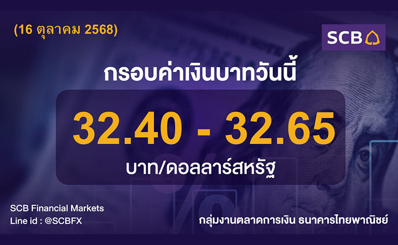 กลุ่มงานตลาดการเงิน ธนาคารไทยพาณิชย์ ประเมินค่าเงินบาท 16 ตุลาคม 2568 เคลื่อนไหวในกรอบ 32.40-32.65 บาท/ดอลลาร์