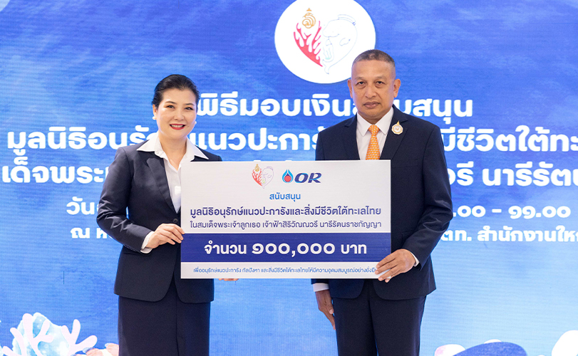 พลเรือเอก สุวิน แจ้งยอดสุข รองประธานกรรมการ มูลนิธิอนุรักษ์แนวปะการังและสิ่งมีชีวิตใต้ทะเลไทย ในสมเด็จพระเจ้าลูกเธอ เจ้าฟ้าสิริวัณณวรี นารีรัตนราชกัญญา ให้เกียรติรับมอบเงินสนับสนุนเพื่อการอนุรักษ์สิ่งแวดล้อม โดยมี นางพิชาภรณ์ วงศ์ศรี ผู้จัดการฝ่ายสำนักประธานเจ้าหน้าที่บริหารและเลขานุการบริษัท บริษัท ปตท. น้ำมันและการค้าปลีก จำกัด (มหาชน) หรือ OR เป็นผู้แทนมอบ ณ ห้องพลังไทย 1 ปตท. สำนักงานใหญ่