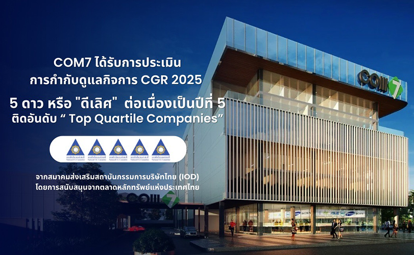 ในปีนี้มีบริษัทจดทะเบียนเข้าร่วมการประเมินทั้งสิ้น 844 บริษัท โดย COM7 ได้รับคะแนนอยู่ในระดับ ดีเลิศ (Excellent) และได้รับการจัดให้อยู่ในกลุ่ม “Top Quartile Companies” ในหมวดมูลค่าหลักทรัพย์ตามราคาตลาด (Market Capitalization) ระหว่าง 30,001 - 100,000 ล้านบาท ซึ่งสะท้อนถึง ศักยภาพ ความโปร่งใส และความโดดเด่นของบริษัทในด้านการกำกับดูแลกิจการที่ดี (Good Corporate Governance)