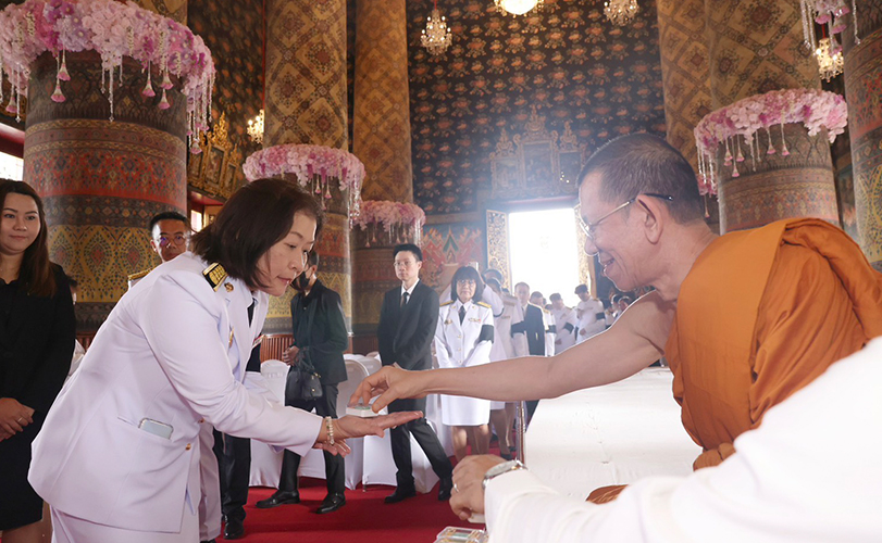 นายเอกนิติ นิติทัณฑ์ประภาศ รองนายกรัฐมนตรีและรัฐมนตรีว่าการกระทรวงการคลัง นำผู้บริหารหน่วยงานภายใต้สังกัดกระทรวงการคลังร่วมทอดผ้าพระกฐินพระราชทานกระทรวงการคลัง ประจำปี 2568 ณ วัดหงส์รัตนาราม แขวงวัดอรุณ เขตบางกอกใหญ่ กรุงเทพฯ เพื่อร่วมเป็นส่วนหนึ่งในการสืบทอดประเพณีสำคัญทางพระพุทธศาสนา โดย ธ.ก.ส. ได้ร่วมทำบุญถวายปัจจัยสมทบองค์ผ้าพระกฐินพระราชทานกระทรวงการคลัง เพื่อสมทบทุนในการซ่อมแซม บูรณปฏิสังขรณ์เสนาสนะและสาธารณูปโภคภายในวัด อำนวยความสะดวกให้กับพระภิกษุ สามเณร รวมถึงประชาชนผู้มีจิตศรัทธาในการทำกิจกรรมทางศาสนา และมอบทุนการศึกษาให้แก่โรงเรียนวัดหงส์ รัตนารามเพื่อสร้างโอกาสทางการศึกษาให้กับนักเรียนและเยาวชนต่อไป โดยมีนายสุวินัย ไทยลาวัลย์ และนางสาวรัตนสิริ เลิศอมรวณิช ผู้ช่วยผู้จัดการธนาคารเพื่อการเกษตรและสหกรณ์การเกษตร (ธ.ก.ส.) เป็นตัวแทน ธ.ก.ส. เข้าร่วมพิธี