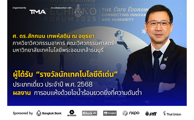 งาน Outstanding Technologist Awards & TechInno Forum 2025 จัดโดย สมาคมการจัดการธุรกิจแห่งประเทศไทย (TMA) ร่วมกับ มูลนิธิส่งเสริมวิทยาศาสตร์และเทคโนโลยีในพระบรมราชูปถัมภ์ โดยได้รับการสนับสนุนจากสำนักงานการวิจัยแห่งชาติ (วช.) ธนาคารกรุงเทพ จำกัด (มหาชน), บริษัท เบทาโกร จำกัด (มหาชน), ธนาคารกสิกรไทย จำกัด (มหาชน), ธนาคารกรุงไทย จำกัด (มหาชน), สำนักงานสภานโยบายการอุดมศึกษา วิทยาศาสตร์ วิจัยและนวัตกรรมแห่งชาติ (สอวช.), บริษัท ปตท. จำกัด (มหาชน) และ บริษัท ไทยยูเนี่ยน กรุ๊ป จำกัด (มหาชน)