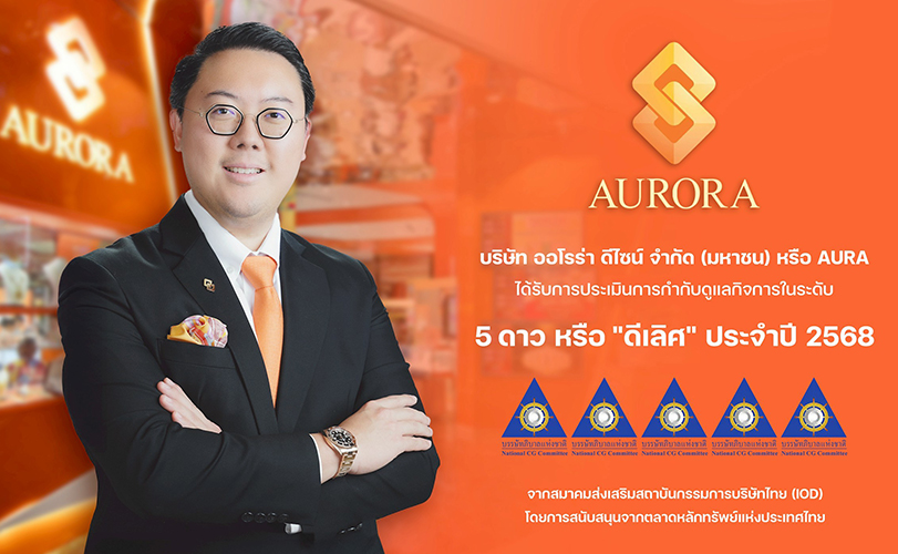 บริษัท ออโรร่า ดีไซน์ จำกัด (มหาชน) หรือ AURA ผู้นำธุรกิจค้าปลีกทองคำและธุรกิจขายฝาก ทองมาเงินไป ได้รับผลการประเมินการกำกับดูแลกิจการของบริษัทจดทะเบียนไทย ประจำปี 2568 (Corporate Governance Report of Thai Listed Companies: CGR 2025) ในระดับ “ดีเลิศ” หรือ 5 ดาว (Excellent CG Scoring) ต่อเนื่องเป็นปีที่ 2 จาก สมาคมส่งเสริมสถาบันกรรมการบริษัทไทย (IOD) โดยได้รับการสนับสนุนจาก ตลาดหลักทรัพย์แห่งประเทศไทย และ สำนักงานคณะกรรมการกำกับหลักทรัพย์และตลาดหลักทรัพย์ (ก.ล.ต.)