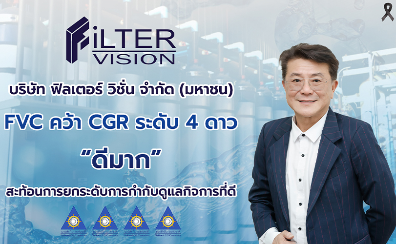 บริษัท ฟิลเตอร์ วิชั่น จำกัด (มหาชน) หรือ FVC เดินหน้าตอกย้ำความมุ่งมั่นในการดำเนินธุรกิจอย่างโปร่งใส มีธรรมาภิบาล และยั่งยืนในทุกมิติ ล่าสุด FVC ได้รับการประเมิน ในระดับ 4 ดาว หรือ “ดีมาก” ประจำปี 2568 จากโครงการสำรวจการกำกับดูแลกิจการของบริษัทจดทะเบียนไทย (Corporate Governance Report of Thai Listed Companies: CGR 2025) ซึ่งจัดโดยสมาคมส่งเสริมสถาบัน กรรมการบริษัทไทย (IOD) โดยได้รับการสนับสนุนจากตลาดหลักทรัพย์แห่งประเทศไทย และสำนักงานคณะกรรมการกำกับหลักทรัพย์และตลาดหลักทรัพย์ (ก.ล.ต.) ซึ่งมีบริษัทจดทะเบียนเข้าร่วมการประเมิน ทั้งสิ้น 844 บริษัท