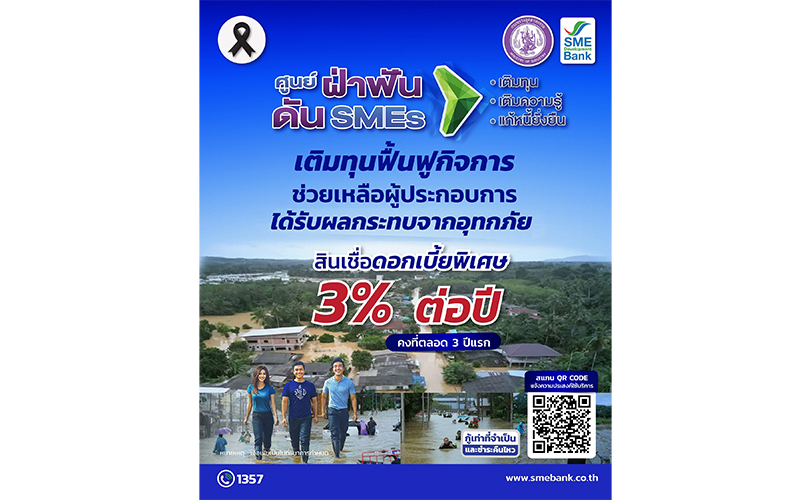 นายพิชิต มิทราวงศ์ กรรมการผู้จัดการ ธนาคารพัฒนาวิสาหกิจขนาดกลางและขนาดย่อมแห่งประเทศไทย (ธพว.) หรือ SME D Bank เปิดเผยว่า จากสถานการณ์อุทกภัยที่เกิดขึ้นในพื้นที่ภาคใต้ ส่งผลกระทบต่อการดำเนินธุรกิจและสร้างความเสียหายให้แก่ผู้ประกอบการเอสเอ็มอีในพื้นที่อย่างรุนแรง ดังนั้น SME D Bank ได้ออกมาตรการช่วยเหลือระยะเร่งด่วนไปแล้ว และเพื่อขยายความช่วยเหลือให้กว้างขวางยิ่งขึ้น โดยเฉพาะรองรับหลังสถานการณ์อุทกภัยคลี่คลาย ซึ่งผู้ประกอบการเอสเอ็มอี มีความจำเป็นต้องการเงินทุนเพิ่มเติม เพื่อเสริมสภาพคล่อง ลงทุน ซ่อมแซม ปรับปรุง หรือยกระดับฟื้นฟูกิจการให้กลับมาเดินหน้าได้โดยเร็ว ธนาคารร่วมกับ “สมาพันธ์ SME ไทย” ซึ่งมีเครือข่ายผู้ประกอบการเอสเอ็มอีจำนวนมากอยู่ในทุกพื้นที่ทั่วประเทศ โดยจะเชื่อมโยงการสนับสนุนผู้ประกอบการเอสเอ็มอีในพื้นที่ภาคใต้ ทั้งที่เป็นสมาชิกของสมาพันธ์ SME ไทย และทั่วไป เข้าถึงแหล่งทุนเพื่อฟื้นฟูกิจการ ด้วยอัตราดอกเบี้ยต่ำพิเศษเพียงแค่ 3% ต่อปี คงที่ตลอด 3 ปีแรก ผ่อนชำระนานสูงสุด 10 ปี ปลอดชำระหนี้เงินต้นสูงสุด 12 เดือน วงเงินกู้สูงสุด 15 ล้านบาท