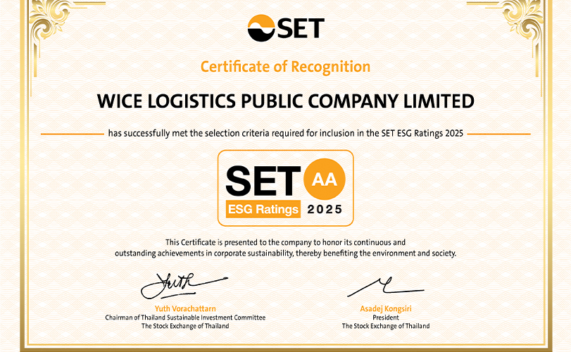นายชูเดช คงสุนทร กรรมการผู้จัดการ ส่วนงานพัฒนาธุรกิจกลุ่มบริษัท บริษัท ไวส์ โลจิสติกส์ จำกัด (มหาชน) หรือ WICE ผู้ให้บริการโลจิสติกส์ระหว่างประเทศแบบครบวงจร เปิดเผยว่า บริษัทได้รับการประเมิน SET ESG Ratings ประจำปี 2568 ระดับ AA ในกลุ่มบริการ ต่อเนื่องเป็นปีที่ 3 ด้วยคะแนนการประเมิน 86 คะแนน โดยเป็น 1 ใน 265 บริษัทจดทะเบียนที่ได้รับการประกาศผลประเมินหุ้นยั่งยืน SET ESG Ratings จากตลาดหลักทรัพย์แห่งประเทศไทย (ตลท.) สะท้อนให้เห็นความมุ่งมั่นในการดำเนินธุรกิจควบคู่กับการคำนึงถึงสิ่งแวดล้อม สังคม และ การบริหารงานตามหลักบรรษัทภิบาล (Environmental, Social and Governance หรือ ESG)