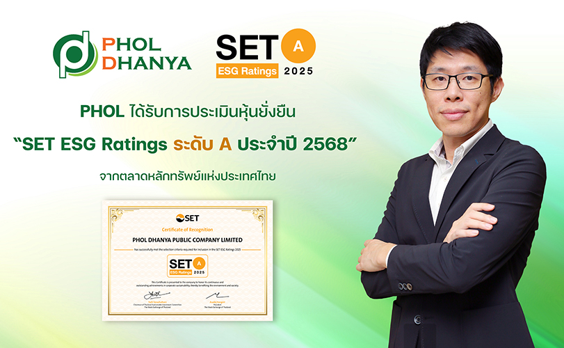 บริษัท ผลธัญญะ จำกัด (มหาชน) หรือ PHOL ผู้ประกอบธุรกิจสินค้าและบริการเพื่อความปลอดภัย อาชีวอนามัย และสิ่งแวดล้อมแบบครบวงจรรายใหญ่ของประเทศไทย ได้รับผลการประเมินหุ้นยั่งยืน “SET ESG Rating” ประจำปี 2568 ที่ระดับ “A” ต่อเนื่องเป็นปีที่ 3 โดย PHOL เป็น 1 ใน 265 บริษัทจดทะเบียน ที่ผ่านเกณฑ์และได้รับการประกาศผลประเมินหุ้นยั่งยืน ประจำปี 2568 ซึ่งจัดโดยตลาดหลักทรัพย์แห่งประเทศไทย สะท้อนถึงความมุ่งมั่นในการสร้างความยั่งยืนแบบครอบคลุมในทุกมิติ ESG (Environmental, Social and Governance)