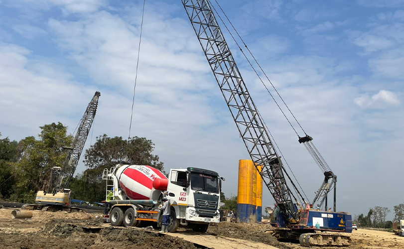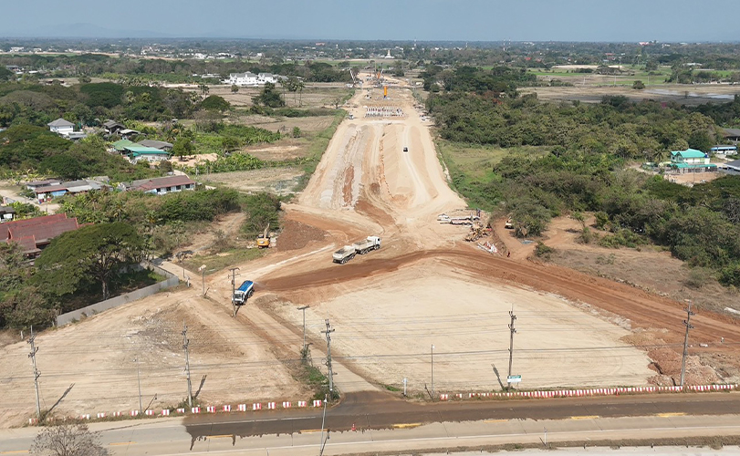 - บริเวณ กม.ที่ 0+676.528 ก่อสร้างสะพานข้ามทางรถไฟ ขนาด 4 ช่องจราจร ความยาวสะพานรวม 580 เมตร