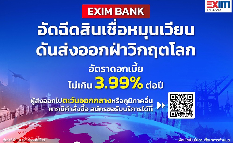 EXIM BANK ออกมาตรการอัดฉีดสินเชื่อหมุนเวียน หนุนผู้ส่งออกไทยฝ่าวิกฤต