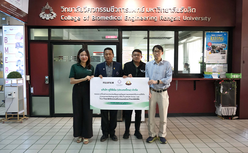 บริษัท ฟูจิฟิล์ม (ประเทศไทย) จำกัด เดินหน้าสนับสนุนการพัฒนาบุคลากรทางการแพทย์ของประเทศด้วยการมอบเครื่องอ่านและแปลงสัญญาณข้อมูลภาพเอกซเรย์เป็นระบบดิจิทัล (Computed Radiography หรือ CR) พร้อมชุดแผ่นรับภาพรังสี เพื่อใช้ประโยชน์ด้านการเรียนการสอนและการพัฒนาศักยภาพบุคลากรด้านรังสีการแพทย์ โดยจัดสรรให้แก่สถาบันการศึกษารวม 3 แห่ง ได้แก่ หลักสูตรรังสีเทคนิค คณะสหเวชศาสตร์ จุฬาลงกรณ์มหาวิทยาลัย, หลักสููตรรังสีเทคนิค คณะแพทยศาสตร์วชิรพยาบาล มหาวิทยาลัยนวมินทราธิราช และวิทยาลัยวิศวกรรมชีวการแพทย์ มหาวิทยาลัยรังสิต