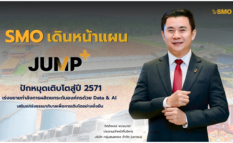 นายกิตติพงษ์ พวงมาลา ประธานเจ้าหน้าที่บริหาร บริษัท กลุ่มสมอทอง จำกัด (มหาชน) หรือ SMO ประกอบการธุรกิจผลิตและจำหน่ายน้ำมันปาล์มดิบ และผลิตภัณฑ์ที่เกี่ยวเนื่อง และธุรกิจผลิตไฟฟ้าจากเชื้อเพลิงก๊าซชีวภาพเพื่อจำหน่ายให้กับการไฟฟ้าส่วนภูมิภาค เปิดเผยว่า แผนการเพิ่มมูลค่าบริษัทภายใต้โครงการ JUMP+ โดยกำหนดยุทธศาสตร์สำคัญเพื่อยกระดับขีดความสามารถในการแข่งขันขององค์กรในช่วงปี 2569-2571 ผ่านการบริหารการเติบโตอย่างสมดุลใน 3 มิติหลัก ได้แก่ การเติบโตของรายได้, การเพิ่มประสิทธิภาพและความสามารถในการทำกำไร และ การบริหารโครงสร้างเงินทุนให้เหมาะสม ทั้งนี้ บริษัทตั้งเป้าหมาย กำไรสุทธิปี 2571 ประมาณ 850 ล้านบาท โดยวางแผนผลักดันรายได้จากธุรกิจหลักผ่านการขยายกำลังการผลิตส่วนโรงงานสกัดน้ำมันปาล์มดิบ การเพิ่มมูลค่าให้กับผลิตภัณฑ์หลักและผลิตภัณฑ์พลอยได้ ตลอดจนการขยายฐานลูกค้าในประเทศคู่ค้าเดิมและการเปิดตลาดใหม่ในกลุ่มพลังงานชีวภาพทั้งในยุโรปและเอเชียตะวันออก ซึ่งจะเป็นอีกหนึ่งกลไกสำคัญในการต่อยอดการเติบโตของบริษัทในระยะถัดไป