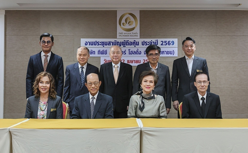 ดร.ธนู กุลชล ประธานกรรมการ, นางกนกทิพย์ จันทร์พลังศรี ประธานคณะกรรมการบริหาร, นายเชิดศักดิ์ วัฒนวิจิตรกุล กรรมการผู้จัดการใหญ่ พร้อมด้วยคณะกรรมการ บริษัท ทีพีซี เพาเวอร์ โฮลดิ้ง จำกัด (มหาชน) (TPCH) ถ่ายภาพร่วมกันในงานประชุมสามัญผู้ถือหุ้นประจำปี 2569 ผ่านระบบสื่ออิเล็กทรอนิกส์ (E-AGM) โดยที่ประชุมมีมติอนุมัติให้ผ่านทุกวาระ ทั้งนี้ บริษัทฯ เร่งพัฒนาโครงการพลังงานแสงอาทิตย์ ในสาธารณรัฐประชาธิปไตยประชาชนลาว (สปป.ลาว) ขนาดกำลังการผลิต 100 เมกะวัตต์ ปัจจุบันมีการติดตั้งแผงโซลาร์กว่า 80% แล้ว คาดว่า จะสามารถจ่ายไฟฟ้าเข้าระบบเชิงพาณิชย์ (COD) ได้ ภายในไตรมาส 2/2569 และยังคงมองหาโอกาสการลงทุนใหม่ๆ ในธุรกิจที่มีความเชี่ยวชาญ มีประสบการณ์ เพื่อสร้างการเติบโตและเพิ่มช่องทางรายได้ในอนาคตอย่างมั่นคง งานดังกล่าวจัดขึ้น ณ ห้องประชุม สำนักงานใหญ่ บมจ.ทีพีซี เพาเวอร์ โฮลดิ้ง กรุงเทพฯ