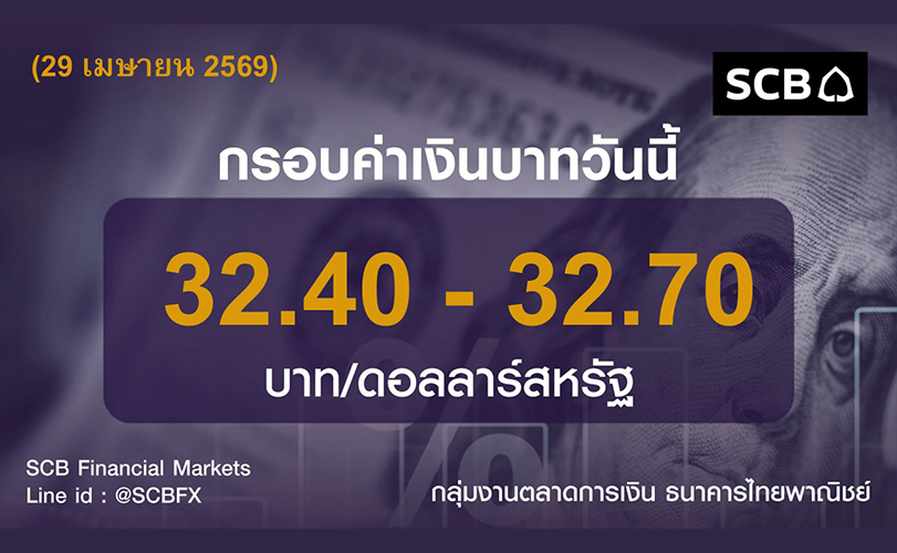 กลุ่มงานตลาดการเงิน ธนาคารไทยพาณิชย์ ประเมินค่าเงินบาท 29 เมษายน 2569 เคลื่อนไหวในกรอบ 32.40-32.70 บาท/ดอลลาร์
