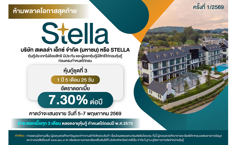 ห้ามพลาด! หุ้นกู้ STELLA ชุดที่ 3 เสนอขาย 5 - 7 พ.ค. 69 นี้