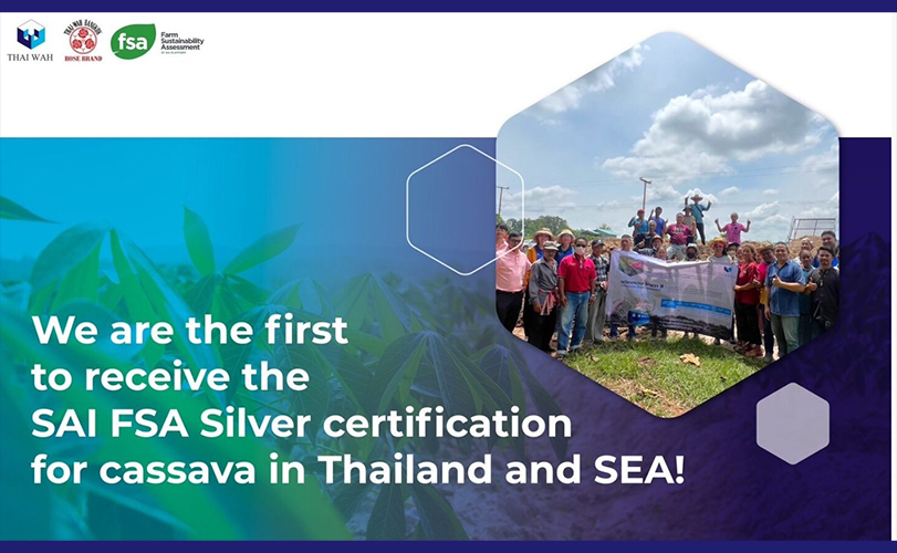 คุณหทัยกานต์ กมลศิริกุล ผู้ช่วยประธานเจ้าหน้าที่บริหารฝ่ายกลยุทธ์ ความยั่งยืน นวัตกรรม บริษัท ไทยวา จำกัด (มหาชน) หรือ TWPC เปิดเผยว่า จากการที่ไทยวาได้เข้าร่วมเป็นสมาชิกของแพลตฟอร์ม Sustainable Agriculture Initiative หรือ SAI เพื่อเรียนรู้และผลักดันการเพาะปลูกอย่างยั่งยืน ส่งผลทำให้การปลูกมันสำปะหลังของกลุ่มบริหารจัดการฟาร์มของ ไทยวา ในจังหวัดกาฬสินธุ์ได้รับรางวัล Farm Sustainability Assessment (FSA) 3.0 ระดับเงิน จากแพลตฟอร์ม SAI ซึ่งถือเป็นรายแรกในประเทศไทยและเอเชียตะวันออกเฉียงใต้ ขณะที่บริษัท ไทยวา อินเวสท์เมนท์(กัมพูชา) จำกัด ซึ่งเป็นบริษัทย่อยของไทยวา ยังได้รับการรับรองมาตรฐาน Farm Sustainability Assessment ระดับซิลเวอร์สำหรับไร่มันสำปะหลังจาก SAI เช่นกัน