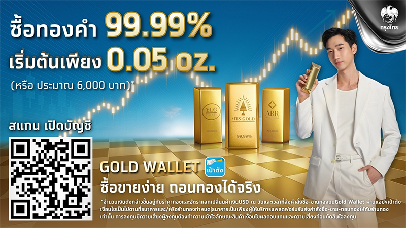 ธนาคารกรุงไทย เดินหน้ายกระดับประสบการณ์การลงทุนทองคำผ่าน Gold Wallet บนแอปพลิเคชัน “เป๋าตัง” ประกาศปรับขนาดขั้นต่ำการซื้อ-ขาย-ถอนทองคำบริสุทธิ์ 99.99% จาก 0.1 ออนซ์ เหลือเพียง 0.05 ออนซ์ มีผลวันที่ 7 พฤศจิกายน 2568 เพื่อเปิดโอกาสให้นักลงทุนรายย่อยเข้าถึงสินทรัพย์ปลอดภัยได้ง่ายขึ้น ท่ามกลางภาวะเศรษฐกิจโลกผันผวน ตอกย้ำบทบาทผู้นำด้านนวัตกรรมการลงทุนของไทย พัฒนาเครื่องมือ การลงทุนให้ทันสมัย เข้าถึงง่าย ตอบโจทย์ผู้ลงทุนยุคใหม่