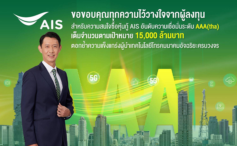 บริษัท แอดวานซ์ อินโฟร์ เซอร์วิส จำกัด (มหาชน) หรือ AIS ผู้ให้บริการโทรคมนาคม และพัฒนาโครงสร้างพื้นฐานดิจิทัลชั้นนำของประเทศไทย ขอขอบคุณทุกความเชื่อมั่นและความไว้วางใจจากผู้ลงทุน ประกาศความสำเร็จในการออกหุ้นกู้ ครั้งที่ 1/2568 ได้รับการตอบรับเป็นอย่างดีด้วยยอดความสนใจซื้อหุ้นกู้เต็มจำนวน บรรลุตามเป้าหมาย 15,000 ล้านบาท เพื่อการลงทุนพัฒนาโครงสร้างพื้นฐานดิจิทัลและเทคโนโลยีอัจฉริยะให้แข็งแกร่งในทุกมิติ ทั้งโครงข่ายมือถือ อินเทอร์เน็ตความเร็วสูง และบริการดิจิทัล ด้วยการเสนอขายหุ้นกู้ของบริษัทฯ จำนวน 3 รุ่น ได้แก่ หุ้นกู้อายุ 5 ปี อัตราดอกเบี้ย 1.92% ต่อปี หุ้นกู้อายุ 7 ปี อัตราดอกเบี้ย 2.29% ต่อปี และ หุ้นกู้อายุ 10 ปี อัตราดอกเบี้ย 2.47% ต่อปี ด้วยอันดับความน่าเชื่อถือระดับ AAA(tha) จาก บริษัท ฟิทช์ เรทติ้งส์ (ประเทศไทย) จำกัด ให้แก่นักลงทุนสถาบันและประชาชนเป็นการทั่วไป ตามที่ได้เปิดให้จองซื้อระหว่างวันที่ 10 – 12 พฤศจิกายน 2568 ที่ผ่านมา