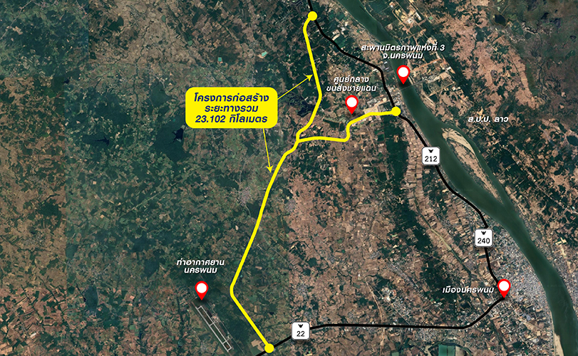 กรมทางหลวงชนบท (ทช.) ได้ดำเนินโครงการก่อสร้างถนนสายเชื่อมศูนย์ซ่อมอากาศยาน - ศูนย์กลางการค้าส่งชายแดนบริเวณสะพานมิตรภาพแห่งที่ 3 - ถนนเชื่อม ทล.212 อำเภอท่าอุเทน จังหวัดนครพนม เพื่อเพิ่มศักยภาพการคมนาคมขนส่งภายในจังหวัดและประเทศเพื่อนบ้าน ระหว่างท่าอากาศยานนครพนมและสะพานมิตรภาพแห่งที่ 3 (นครพนม - คำม่วน) ทั้งยังเป็นการสนับสนุนเขตเศรษฐกิจพิเศษของจังหวัดนครพนม ยกระดับการเดินทางให้เชื่อมโยงระหว่างประเทศไทยและสาธารณรัฐประชาธิปไตยประชาชนลาวได้อย่างเป็นรูปธรรม ตลอดจนช่วยรองรับการเจริญเติบโตของเมืองในอนาคตได้อย่างมีประสิทธิภาพอีกด้วย