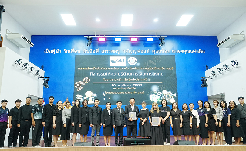 ในโอกาส 50 ปี ตลาดหลักทรัพย์แห่งประเทศไทย เดินหน้าโครงการ “ขยายโอกาสสู่ 50 โรงเรียน เพื่ออนาคตเยาวชนไทย” ล่าสุดร่วมกับโรงเรียนสวนกุหลาบวิทยาลัย ชลบุรี ปลูกฝังพื้นฐานความรู้ด้านการเงินการลงทุนแก่นักเรียน โดยมี เดือนเพ็ญ จันทร์ศิริศรี ผู้อำนวยการ ฝ่ายพัฒนาความรู้การเงินขั้นพื้นฐาน ตลาดหลักทรัพย์ฯ และ ชาตรี เจริญสุข ผู้อำนวยการโรงเรียนสวนกุหลาบวิทยาลัย ชลบุรี ร่วมเปิดงาน พร้อมด้วย วิบูลย์ กรมดิษฐ์ ประธานคณะกรรมการสถานศึกษาขั้นพื้นฐาน และนายกสมาคมผู้ปกครองและครูโรงเรียนสวนกุหลาบวิทยาลัย ชลบุรี พร้อมด้วยทีมวิทยากรจากตลาดหลักทรัพย์ฯ ร่วมให้ความรู้ด้านการเงินการลงทุน มีน้องๆ นักเรียนเข้าร่วมกว่า 200 คน