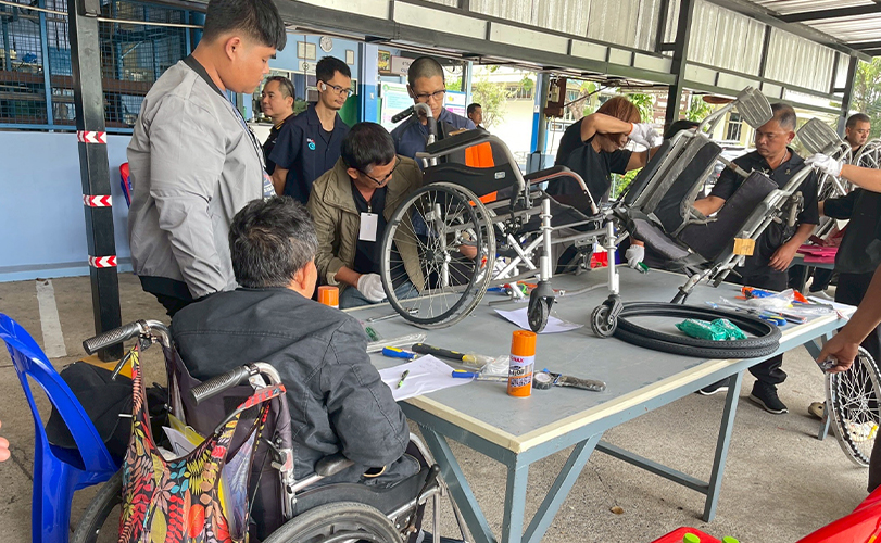 นายโมกุล โปษยะพิสิษฐ์ รองผู้จัดการทั่วไปอาวุโส สายงานการเงิน บรรษัทประกันสินเชื่ออุตสาหกรรมขนาดย่อม (บสย.) เป็นประธานในพิธีเปิด และมอบอุปกรณ์ซ่อมวีลแชร์เบื้องต้น ในโครงการ "เติมความรู้ สร้างโอกาสอาชีพคนพิการ" เพื่อเฉลิมพระเกียรติสมเด็จพระเจ้าภคินีเธอ เจ้าฟ้าเพชรรัตนราชสุดา สิริโสภาพัณณวดี เนื่องในโอกาสวันคล้ายวันประสูติครบ 100 ปี ในวันที่ 24 พฤศจิกายน 2568 โดยจัดอบรมให้ความรู้ “การเริ่มต้นธุรกิจเล็ก ให้เข้มแข็ง” ด้วยการค้ำประกันสินเชื่อของ บสย. และฝึกทักษะการซ่อมบำรุงซ่อมวีลแชร์เบื้องต้น ให้คนพิการสามารถพึ่งพาตนเองและมีคุณภาพชีวิตที่ดีขึ้นได้อย่างยั่งยืน มูลนิธิคนพิการไทย จ.นนทบุรี