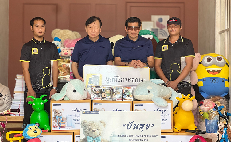 คุณณรงค์ คงคาวนา ผู้ช่วยกรรมการผู้จัดการ ฝ่ายบริการและลูกค้าสัมพันธ์ บริษัท แลนด์ แอนด์ เฮ้าส์ จำกัด (มหาชน) เป็นตัวแทนบริษัทฯ มอบของบริจาคจากกิจกรรมโครงการปันสุขให้กับตัวแทนมูลนิธิกระจกเงา ณ โครงการ Villaggio 2 ศรีนครินทร์-บางนา