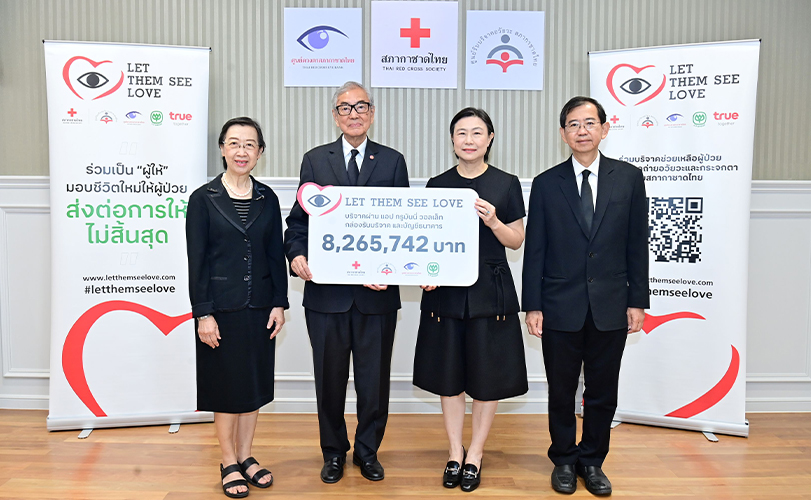 นายเตช บุนนาค เลขาธิการสภากาชาดไทย พร้อมด้วย ผู้ช่วยศาสตราจารย์ แพทย์หญิงลลิดา ปริยกนก ผู้อำนวยการศูนย์ดวงตา และนายแพทย์สุภนิติ์ นิวาตวงศ์ ผู้อำนวยการศูนย์รับบริจาคอวัยวะ รับมอบเงินบริจาค จากประชาชนทั่วประเทศ ผ่านแอปพลิเคชัน ทรูมันนี่ วอลเล็ท และการโอนเงินเข้าบัญชีธนาคารของทางศูนย์ฯ รวมเป็นจำนวนทั้งสิ้น 8,265,742 บาท ภายใต้โครงการ “Let Them See Love 2025” โดยได้รับการสนับสนุนจาก เครือเจริญโภคภัณฑ์ โดยมี นางรุ่งฟ้า เกียรติพจน์ ผู้บริหารโครงการพิเศษ และผู้ช่วยบริหารงานประธานคณะผู้บริหาร เครือเจริญโภคภัณฑ์ เป็นผู้แทนส่งมอบ ณ อาคารเทิดพระเกียรติสมเด็จพระญาณสังวร สภากาชาดไทย