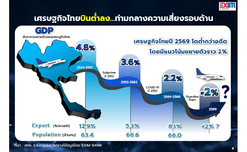ภายใต้บริบทดังกล่าว ผู้ประกอบการไทย โดยเฉพาะ SMEs ยังคงเผชิญข้อจำกัดเชิงโครงสร้าง ทั้งด้านเงินทุนและสภาพคล่อง การเข้าถึงข้อมูลและองค์ความรู้เกี่ยวกับตลาดต่างประเทศ การขยายเครือข่ายคู่ค้า ตลอดจนความสามารถในการบริหารความเสี่ยงจากอัตราแลกเปลี่ยน ความเสี่ยงประเทศผู้ซื้อ และความเสี่ยงผู้ซื้อ ซึ่งส่งผลโดยตรงต่อความสามารถในการแข่งขันและการเติบโตในเวทีการค้าโลก ด้วยเหตุนี้ EXIM BANK ในฐานะสถาบันการเงินเฉพาะกิจของรัฐภายใต้การกำกับดูแลของกระทรวงการคลัง จึงมุ่งปรับบทบาทสู่การเป็น “Export Co-pilot” ที่เข้าใจทิศทางการส่งออก วิธีบริหารจัดการความเสี่ยง และสนับสนุนผู้ส่งออกไทยอย่างครบวงจร ตั้งแต่การให้คำปรึกษา เสริมองค์ความรู้ เติมสภาพคล่อง ไปจนถึงการจัดหาเครื่องมือบริหารความเสี่ยงในทุกช่วงจังหวะของธุรกิจ