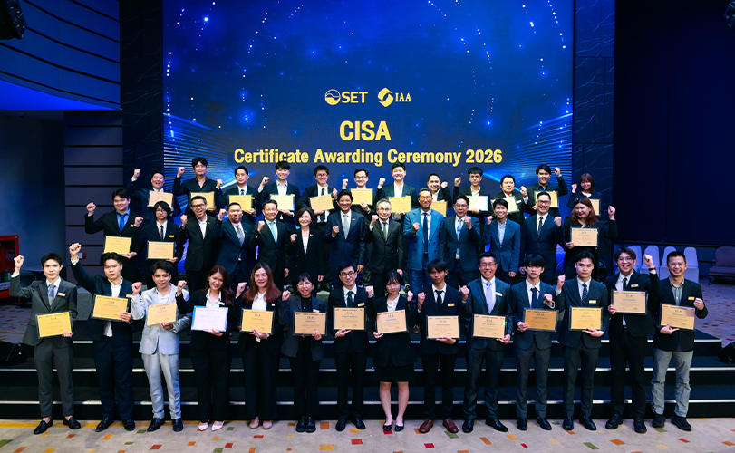 ตลาดหลักทรัพย์ฯ ร่วมกับสมาคมนักวิเคราะห์การลงทุน (IAA) จัดพิธีมอบวุฒิบัตร “CISA Certificate Awarding Ceremony 2026” เพื่อเชิดชูเกียรติและแสดงความยินดีกับผู้ที่ผ่านการทดสอบหลักสูตร CISA ปี 2568 รวมทั้งสิ้น 208 คน พร้อมกันนี้ ได้มอบรางวัล CISA Achievement Award แก่นายณาศิส ประเสริฐสกุล ผู้ประกอบวิชาชีพที่มีผลงานเป็นที่ประจักษ์และสร้างคุณูปการต่อตลาดทุนไทย